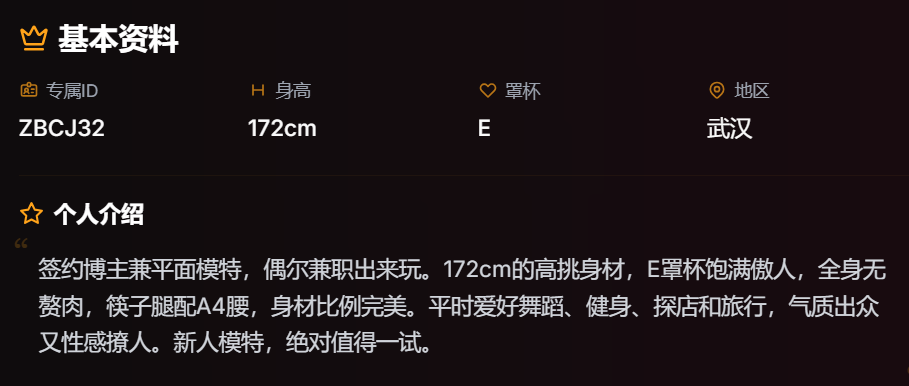 签约博主 平面模特 E杯 筷子腿A4腰**