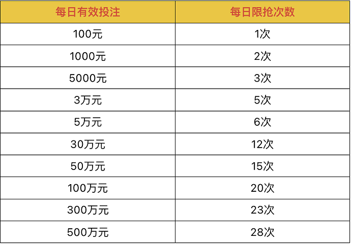 2、会员账号充值50元起,打码200元起,当日可最多抢10次红包;